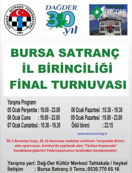 DevamBursa Satranç turnuvasının il finali Dağder Kültür Merkezimizde yapılacaktır. 1 views